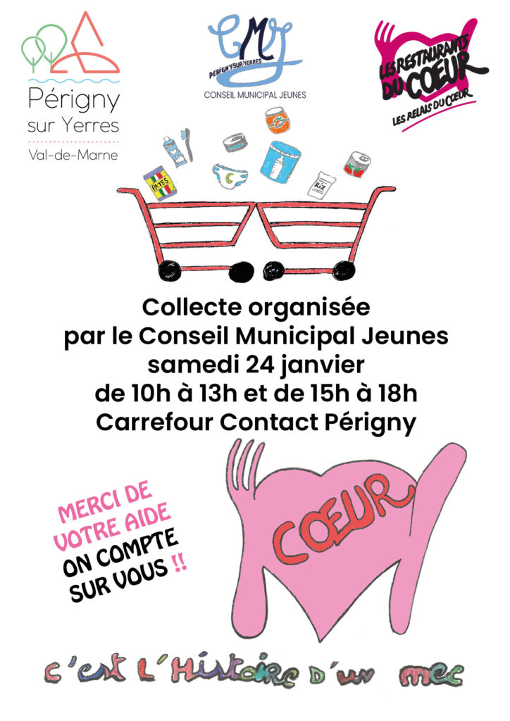 Une collecte de denrées alimentaires non périssables est organisée par le Conseil Municipal Jeunes et les écoles de la commune du lundi 19 janvier au samedi 24 janvier.