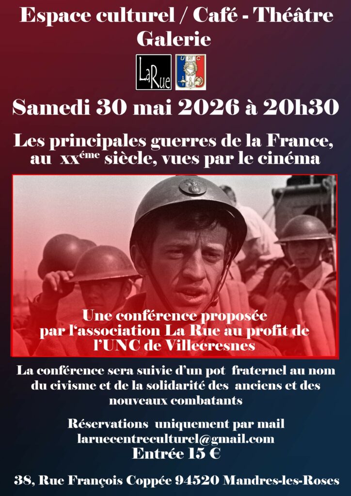 Conférence au profit de l’UNC Villecresnes : « Les principales guerres de la France, au XXe siècle, vues par le cinéma ».