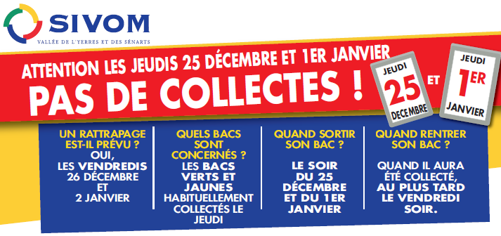Pas de collecte des bacs verts les jeudi 25 et 31 décembre.