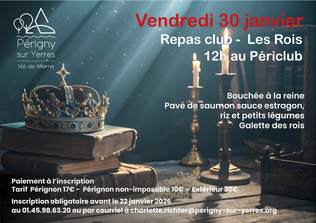 Repas Club sur le thème de « Les Rois », le vendredi 30 janvier à 12h, au Périclub, 16 rue Paul Doumer.